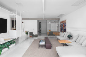 Caracterizado por espaços neutros e minimalistas, o Apartamento AM é privilegiado pela entrada de luz e ventilação natural em abundância, garantida com suas amplas aberturas arredondadas, que garantem seu toque especial.