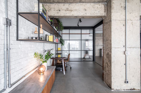 O Apartamento Concreto adota uma linguagem industrial e brutalista, direta e sem ornamentos. A área social privilegia a amplitude e a fluidez, criando continuidade entre os ambientes. Uma paleta de tons frios espelha o estilo dos moradores e reforça a estética do projeto.