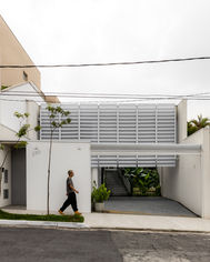O projeto nasceu de uma relação consciente e cuidadosa com o terreno estreito e alongado de 10 por 44 metros.